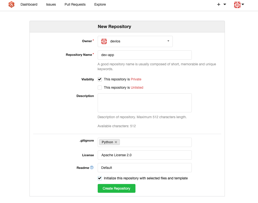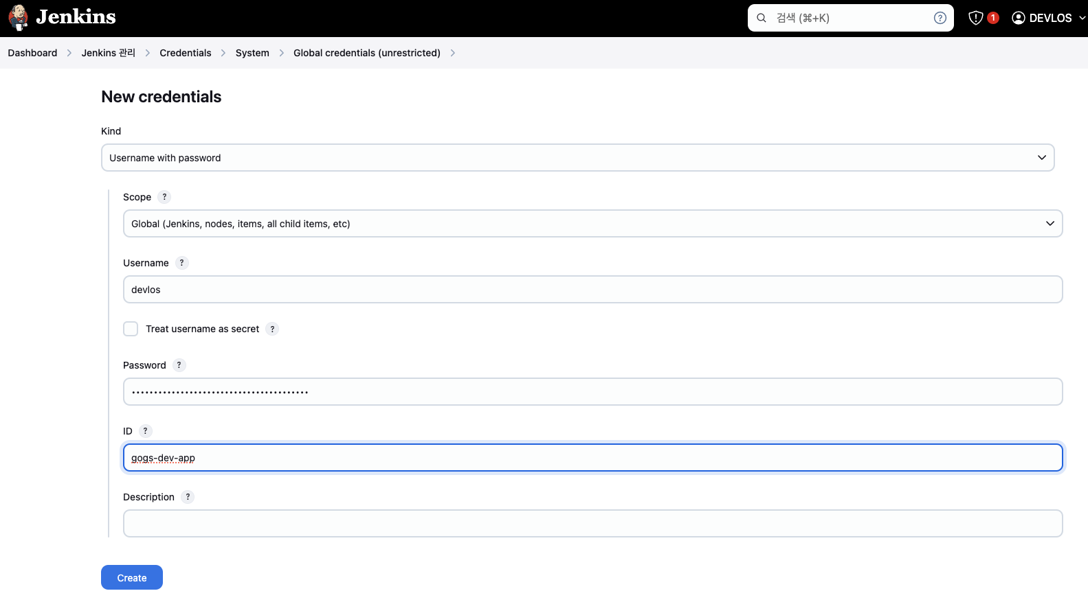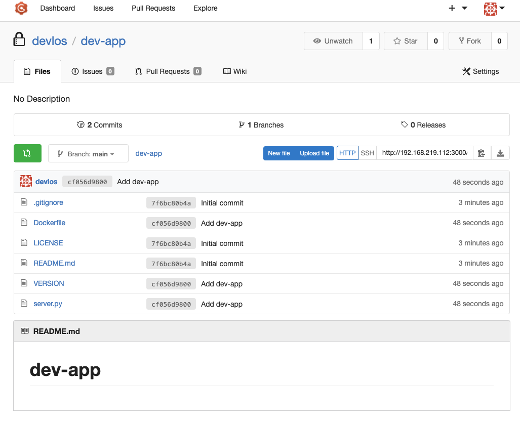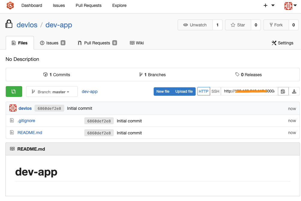 - Repo URL(http://***<mac IP>***:3000/***<Gogs 계정명>***/dev-app)