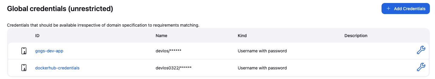 credentialsId: 'gogs-dev-app' // Credentials ID