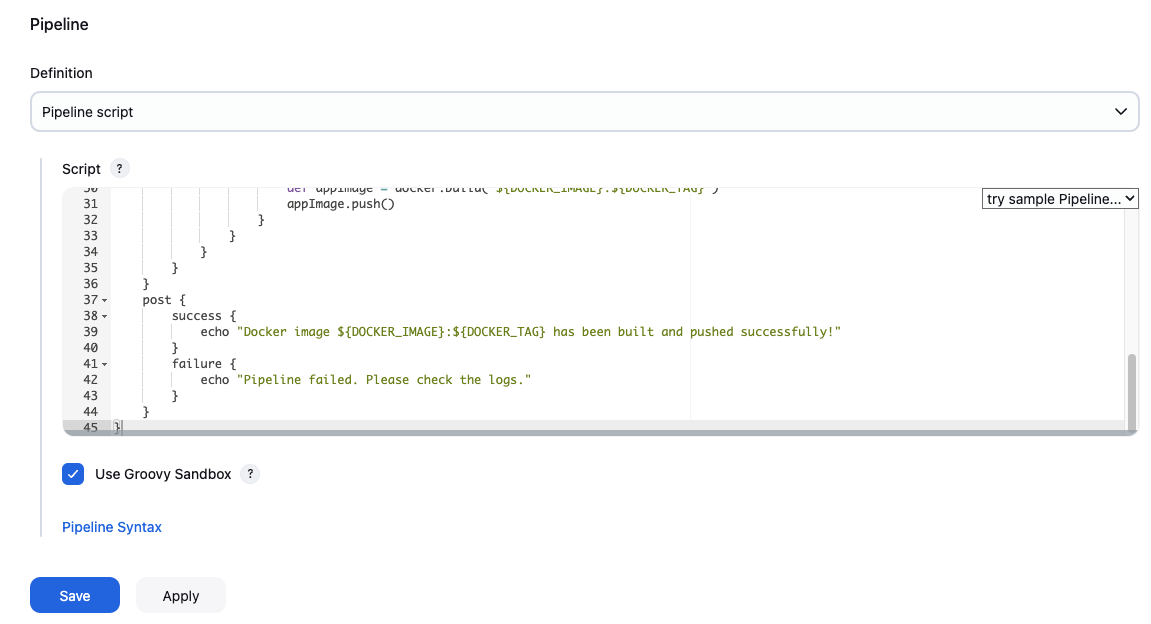 - Script Path : Jenkinsfile