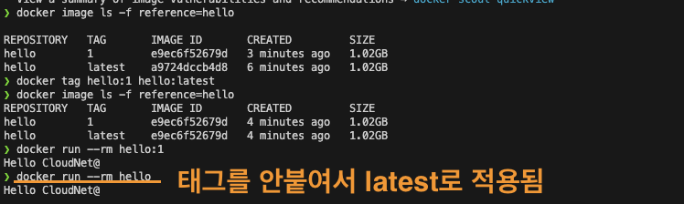docker tag hello:1 hello:latest