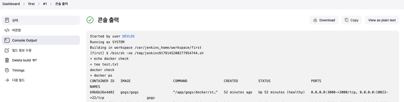 CONTAINER_NAME = 'dev-app' // 컨테이너 이름