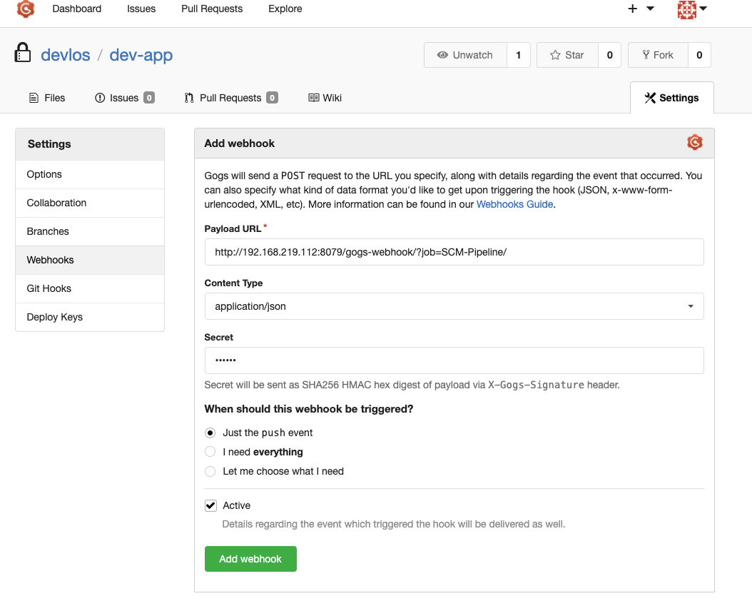 - Payload URL : http://192.168.219.112:8080/gogs-webhook/?job=SCM-Pipeline/