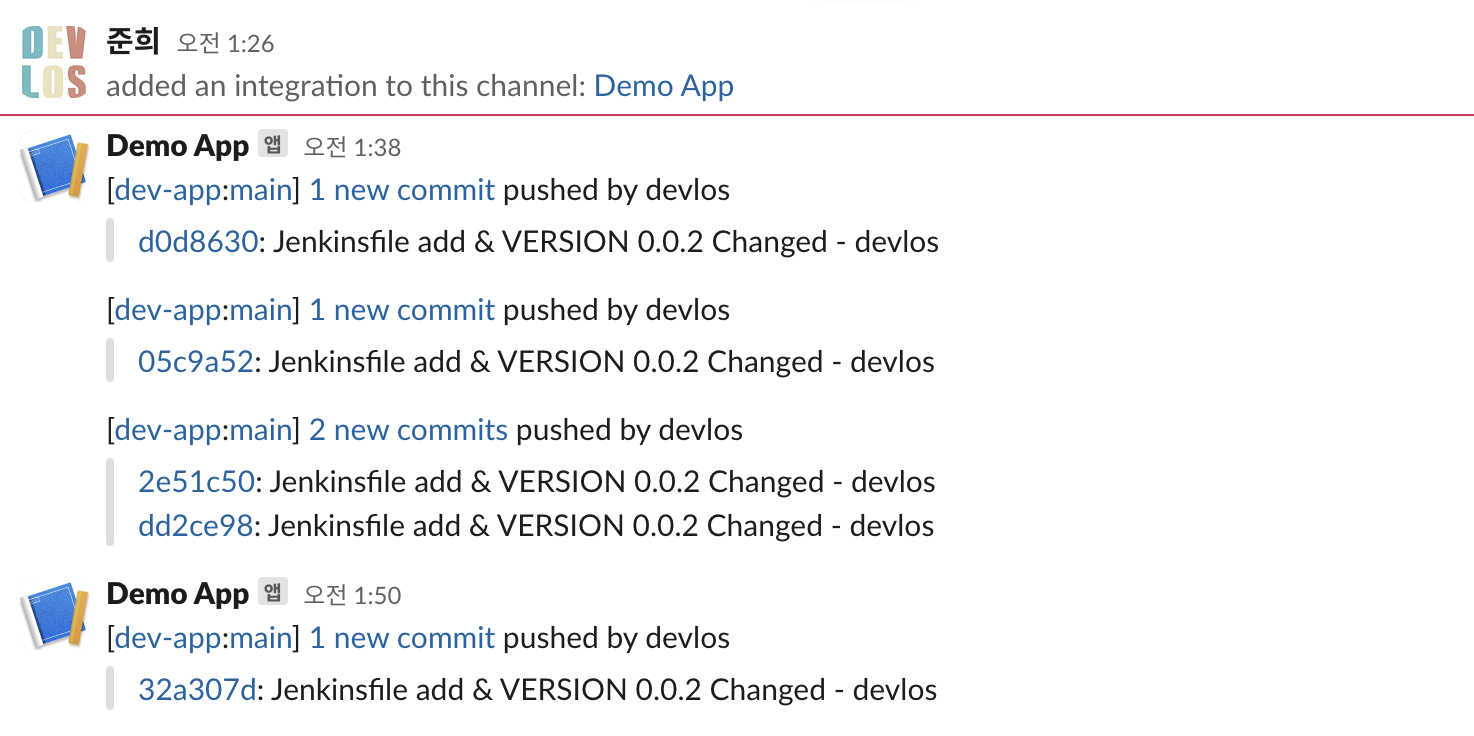 다음과 같이 슬랙에도 푸시 알림이 잘 오는 것을 확인할 수 있습니다.