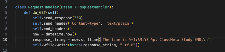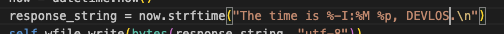 response_string = now.strftime("The time is %-I:%M:%S %p, Study 1week END!!!\n")