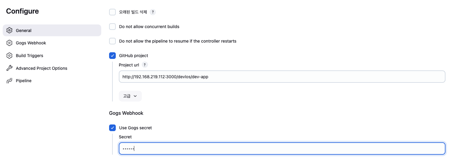 - Build Triggers : Build when a change is pushed to Gogs 체크