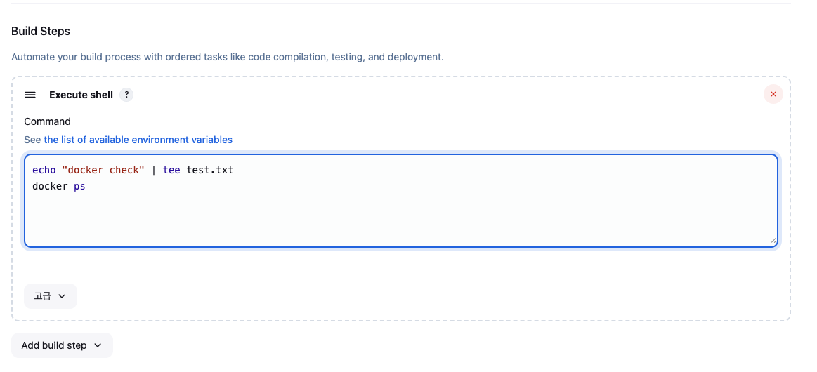 마지막 실습으로는 실행 중인 컨테이너를 중지하고 재배포까지 되도록 파이프라인을 구성합니다.
