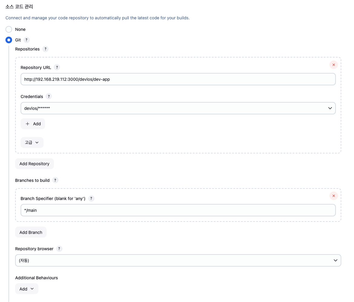 url: 'http://192.168.254.124:3000/devops/dev-app.git', // Git에서 코드 체크아웃
