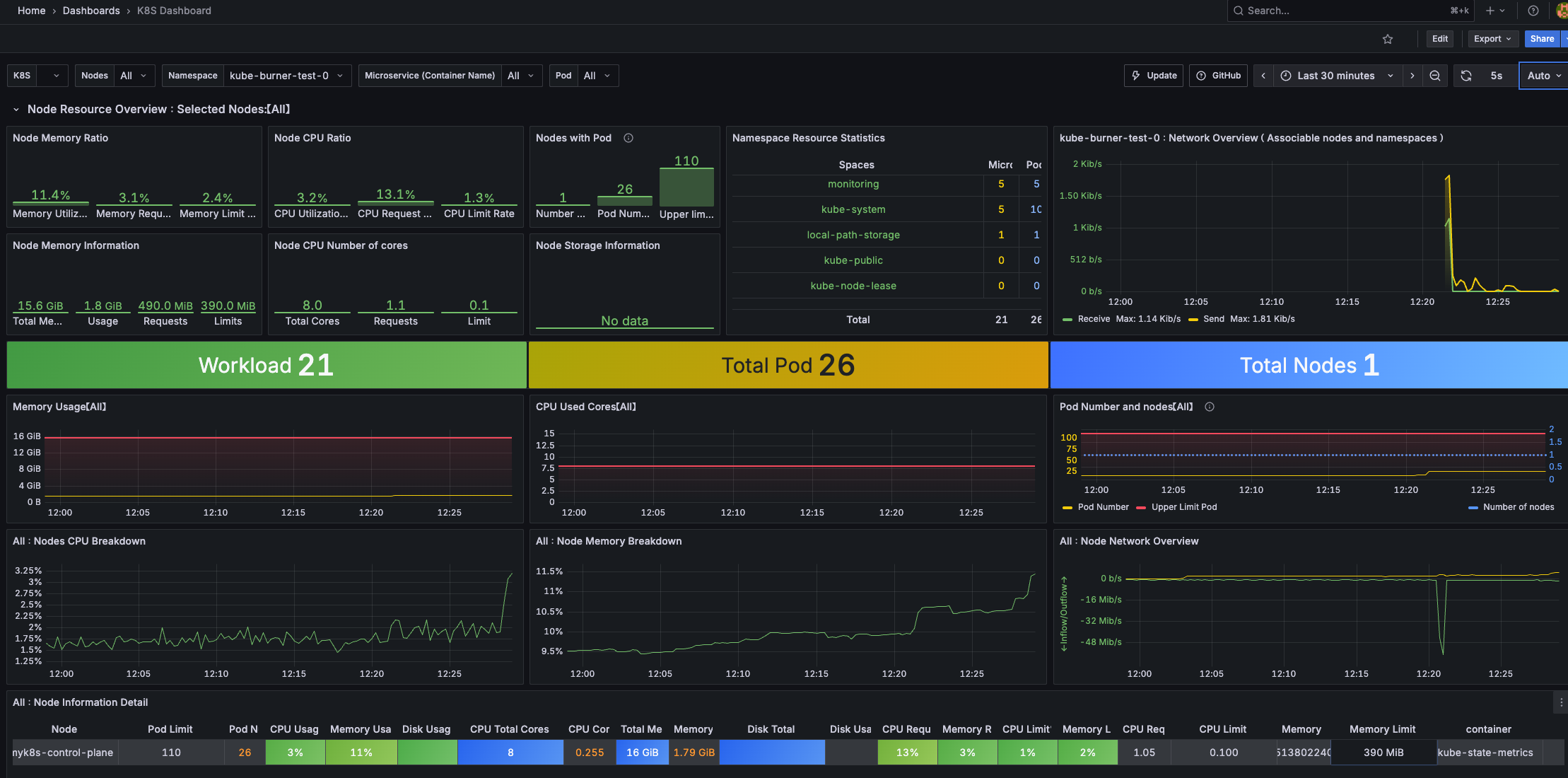 노드, 파드, 네임스페이스별 리소스 사용량(CPU, 메모리 등), 클러스터 이벤트, 워크로드 상태 등 주요 정보를 실시간으로 확인할 수 있어, 클러스터 운영 및 장애 대응에 매우 유용하게 활용할 수 있습니다.