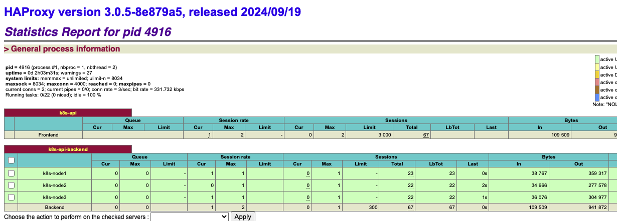API 서버 3대가 Active일 때 앞단 HAProxy(admin-lb) 를 L4 LB로 두어, 사용자(kubectl 등)가 6443/TCP 한 진입점으로 접속하면 트래픽이 세 대의 kube-apiserver로 로드밸런싱됩니다. 외부·관리 트래픽은 이렇게 고가용화됩니다.