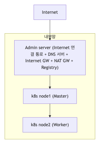 실습을 위해서 Air-Gap 환경에서 Kubernetes 클러스터 배포를 위한 네트워크를 구성합니다.
