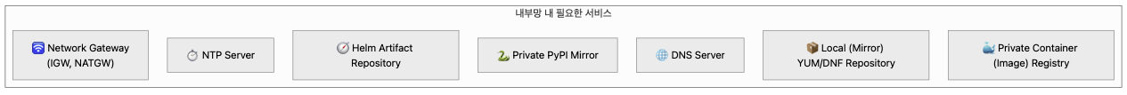 폐쇄망 환경에서 Kubernetes 클러스터를 성공적으로 배포하기 위해 필요한 핵심 서비스들은 다음과 같습니다.