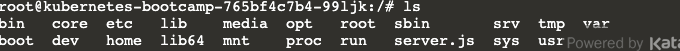 ls 를 이용하여 컨테이너 디렉토리를 확인하면 server.js 라는 파일이 들어있는것을 확인할 수 있다.