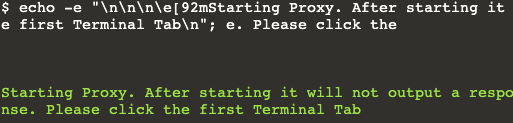 $ echo -e "\n\n\n\e[92mStarting Proxy. After starting it will not output a response. Please click the first Terminal Tab\n";