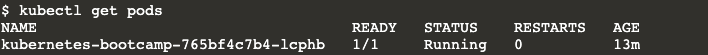 $ kubectl get pods -l run=kubernetes-bootcamp