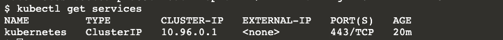 Service 확인 결과 쿠버네티스라는 하나의 서비스가 실행인 것을 확인할 수 있다.