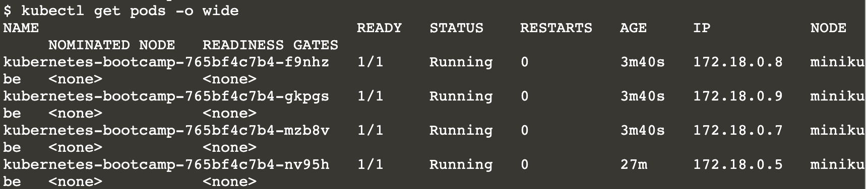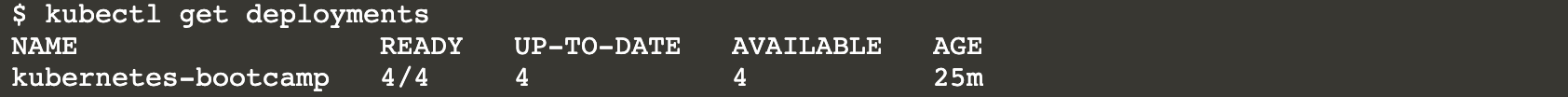 $ kubectl scale deployments/kubernetes-bootcamp --replicas=4