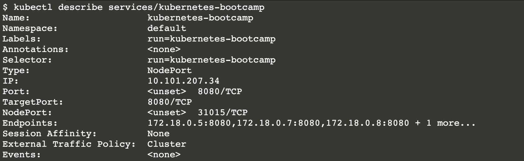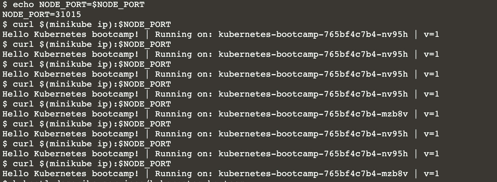 $ export NODE_PORT=$(kubectl get services/kubernetes-bootcamp -o go-template='{{(index .spec.ports 0).nodePort}}')