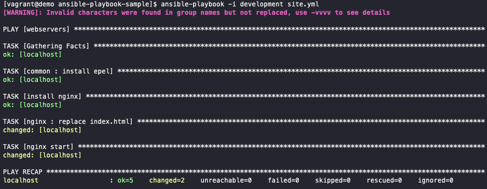 결과를 보면 ok, changed 등과같은 TASK에 대한 결과가 나온다.