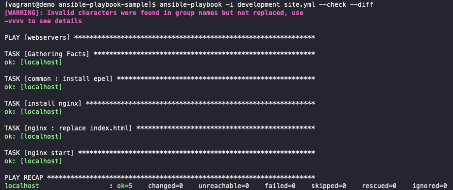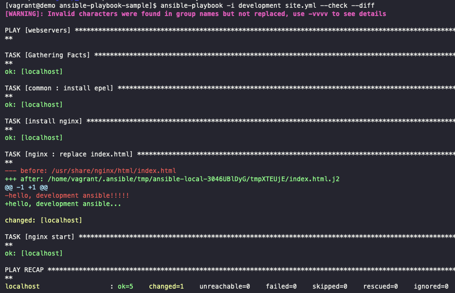 즉 dry-run 기능을 이용하여 환경이 변경되는 상태만 확인하고, 실제로 환경 변화가 일어나지 않은 것이다.