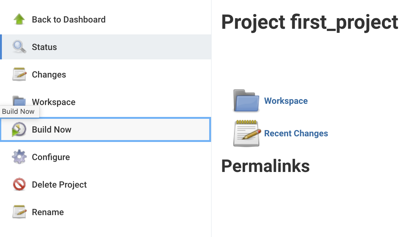 다음으로 Dashboard에서 [Build Now]를 선택하면 아래쪽에 Build history에 빌드 수행내역이 표시된다.