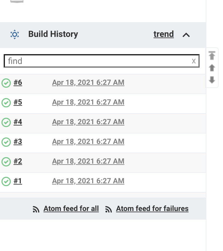 선택하고 나서 Build History를 확인하면 1분마다 Build가 수행된 것을 확인할 수 있다.