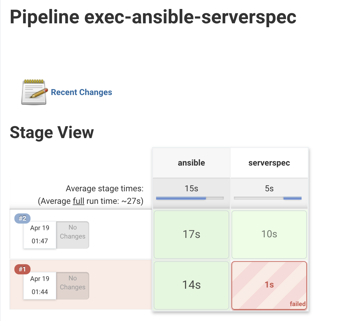 위의 세팅을 완료하고 나서 "exec-ansible"을 빌드하면 성공적으로 빌드가 되었을 경우 "exec-serverspec"도 정상적으로 실행되는 것을 확인할 수 있다.