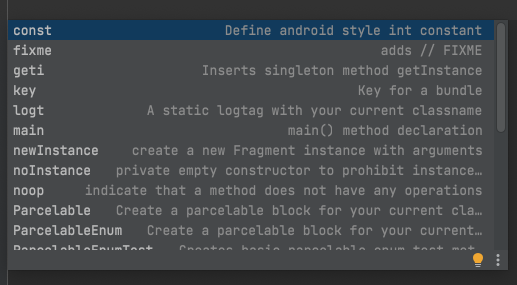 | Live template | 의미 |