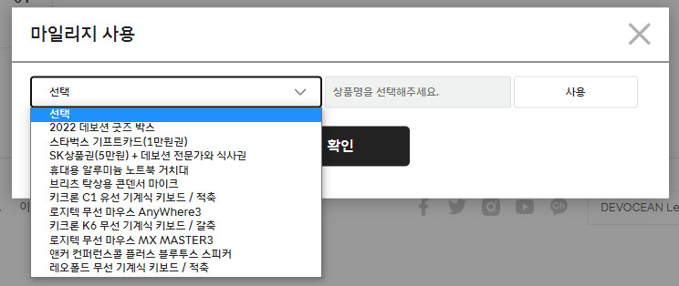 또한 이것도 깨알 팁인데, DEVOCEAN에 가입하고 출석, 블로깅을 통해 포인트를 모으면 전문가와 식사권을 받거나 장비를 획득할 수 있다! (장비가 어마 무시하다........ ★^★)