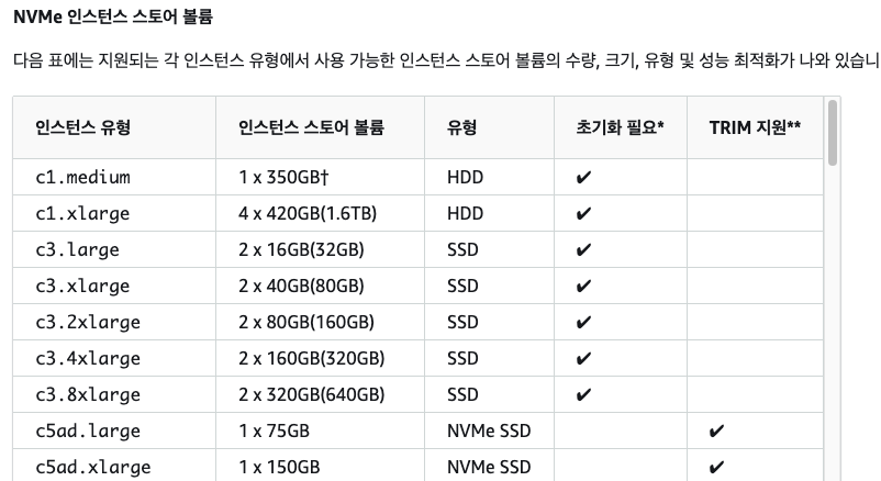 참고 : NVMe 인스턴스 스토어 볼륨