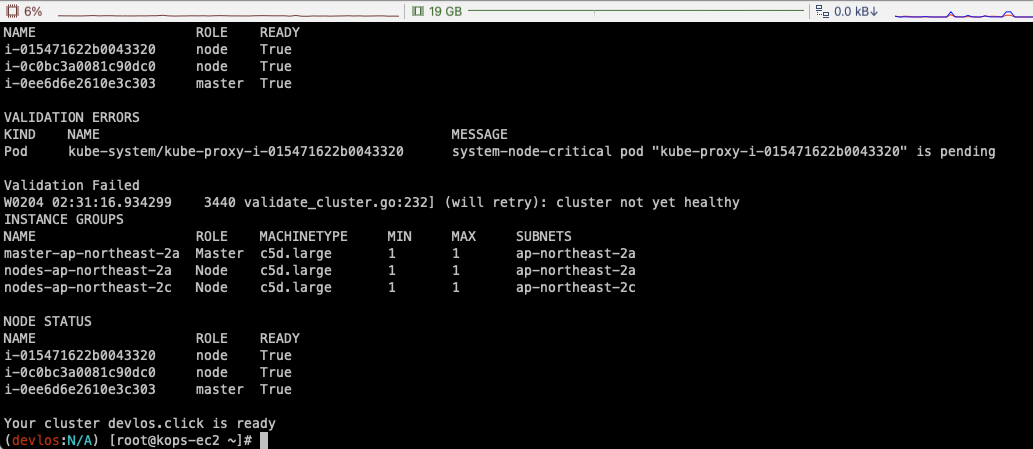 kops update cluster --yes && sleep 3 && kops rolling-update cluster