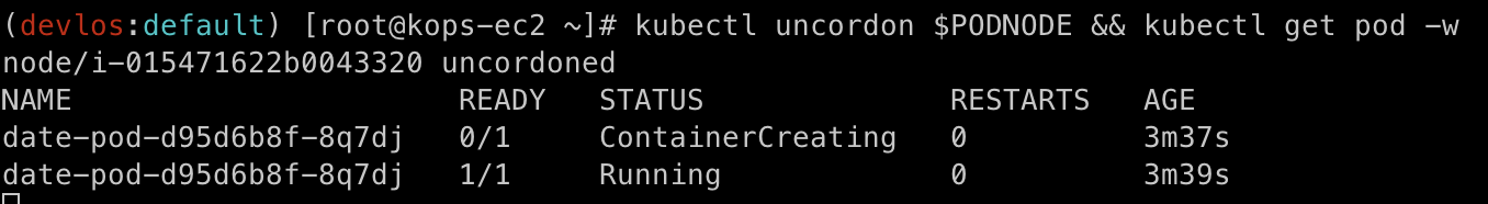 그다음 Node를 Uncordon 처리하여 다시 Pod가 정상적으로 동작하게 만들었다.