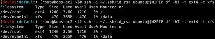 ssh -i ~/.ssh/id_rsa ubuntu@$W1PIP sudo mount /dev/nvme1n1 /data