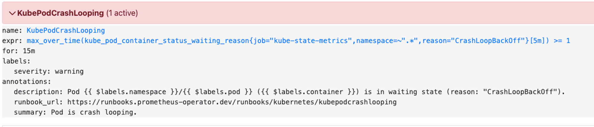 KubernetesPodCrashLooping Alert 생성