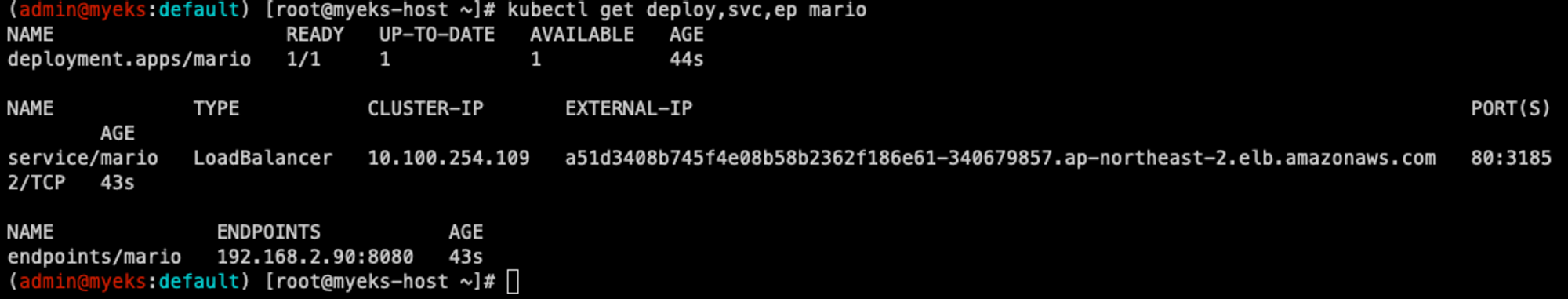 실제로 서비스를 배포하면서 스터디 장이신 가시다님께서 말씀하신 대로 마리오게임의 CLB가 엄청 빨리 배포되는 것을 보면서 공식적으로 제공되는 Kubernetes 서비스가 좋긴 좋구나 하는 생각도 들었다.
