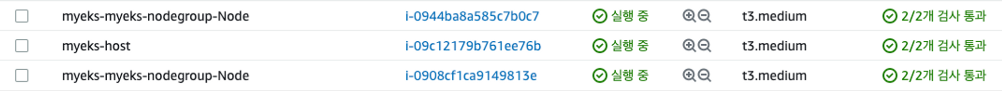 echo $CLUSTER_NAME # myeks 배포용 YAML 파일에 명시되어 있음