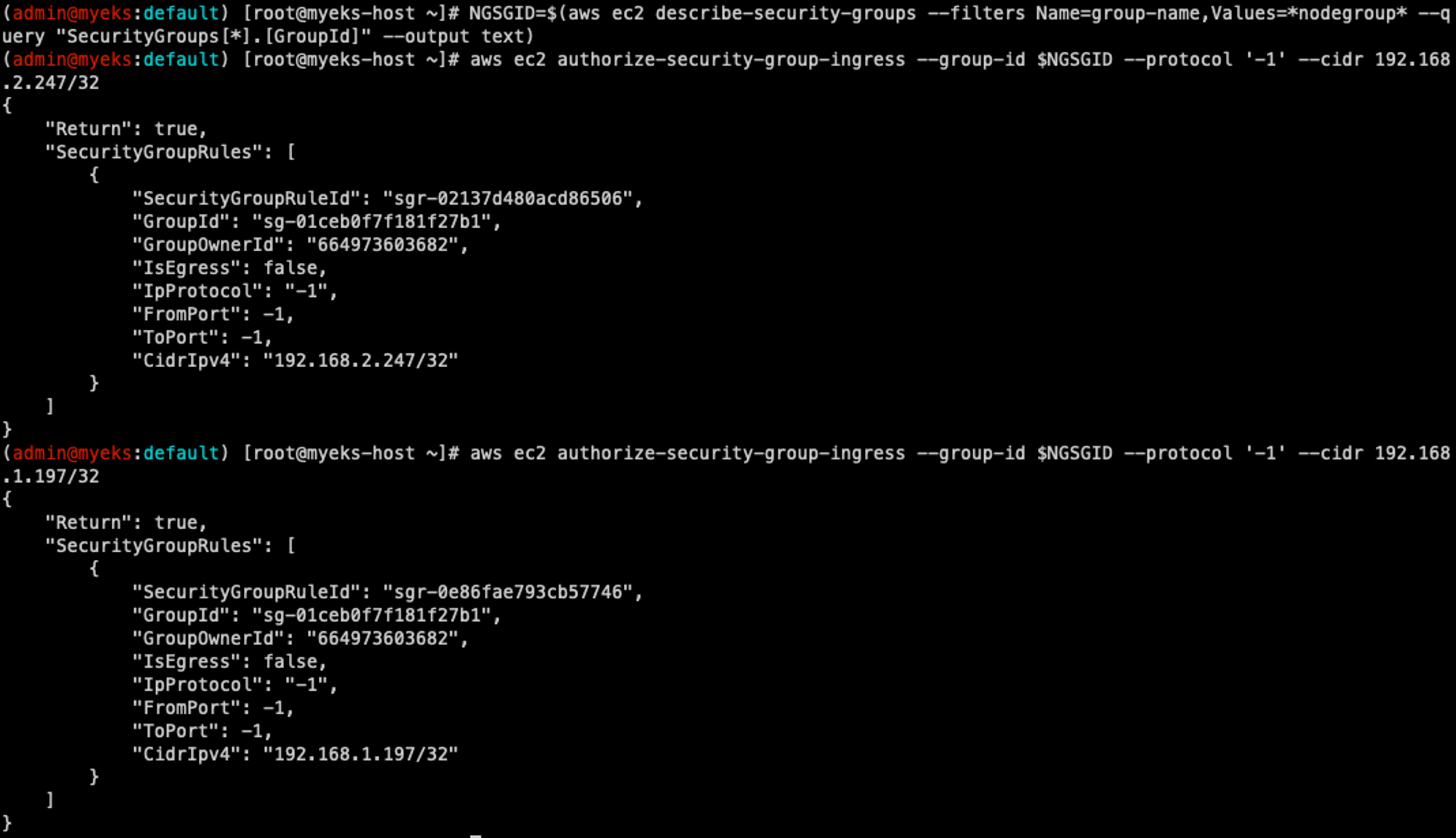 export VPCID=$(aws ec2 describe-vpcs --filters "Name=tag:Name,Values=$CLUSTER_NAME-VPC" | jq -r .Vpcs[].VpcId)