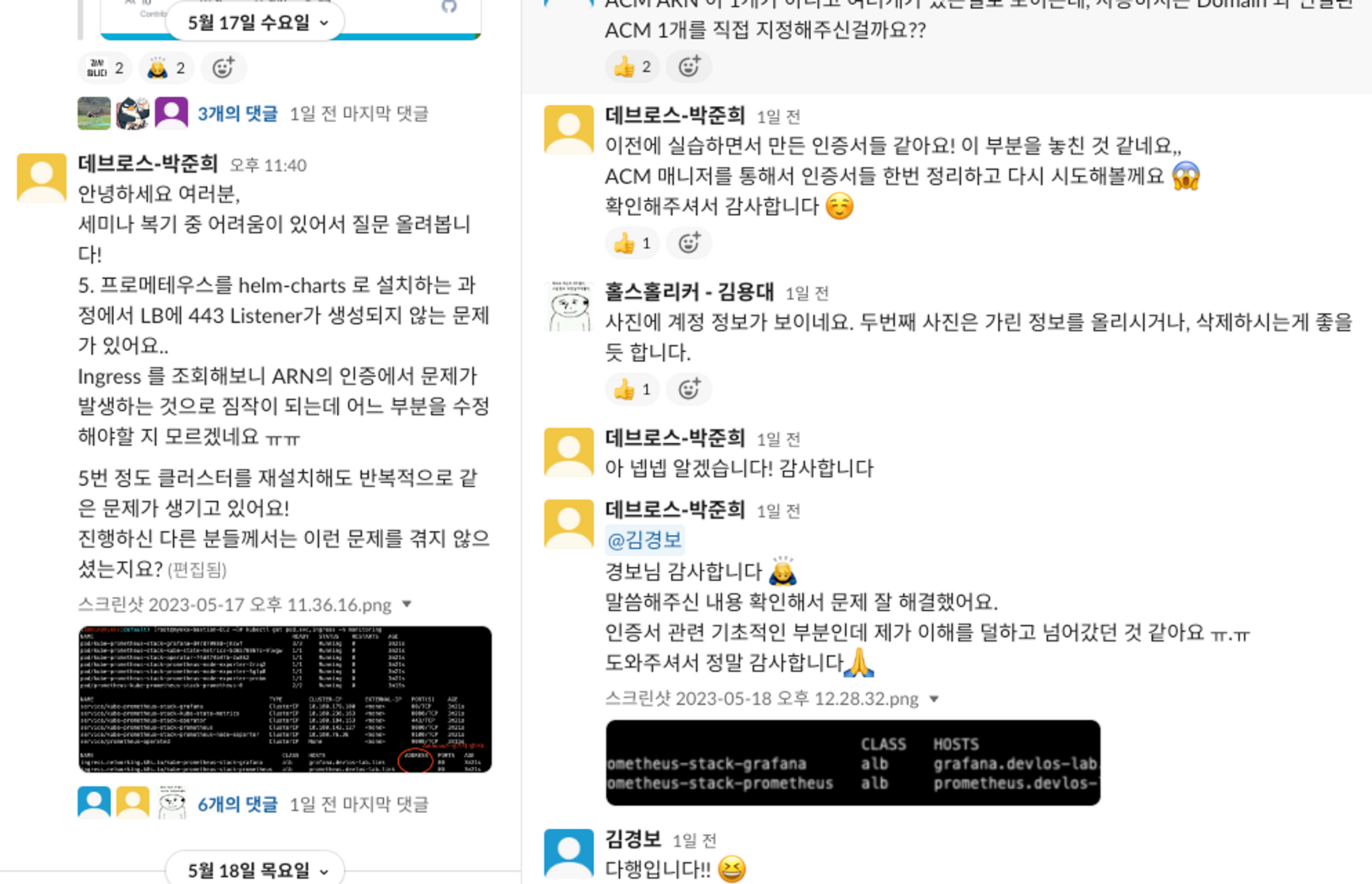 짐작만 하고 있던 문제점을 여러 분들께서 함께 고민해 주셔서 헤쳐나갈 수 있었던 것 같다. 새벽에 저 오류가 나는 시점에 생존의 위협을 느꼈었는데.. 그룹 스터디에 친절하신 분들이 많아서 포기하지 않고, 다음날 계속 진행을 할 수 있었다. (너무 감사합니다ㅠ_ ㅠ..)