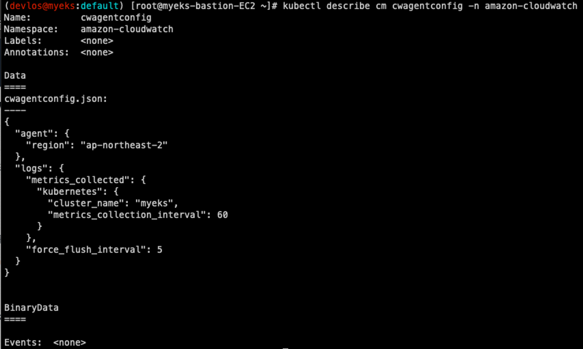 클라우드 와치를 통해서 EKS 클러스터 로그를 확인할 수 있었다. 이를 활성화하려면 다음과 같이 eks 클러스터의 로깅을 활성화해주는 과정이 필요하다.