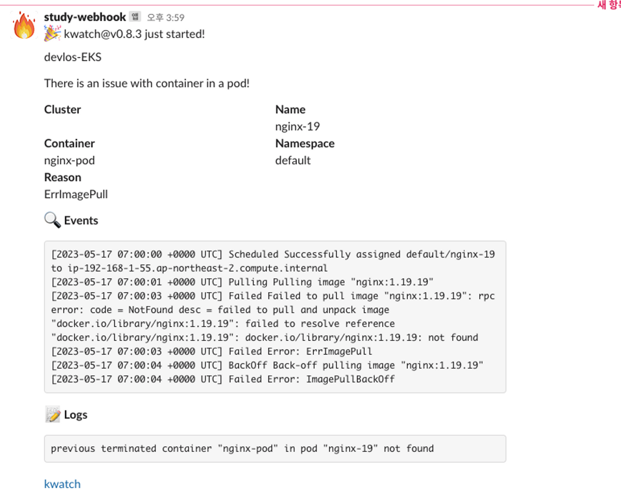 - 종료된 파드의 로그는 kubectl logs로 조회 할 수 없음