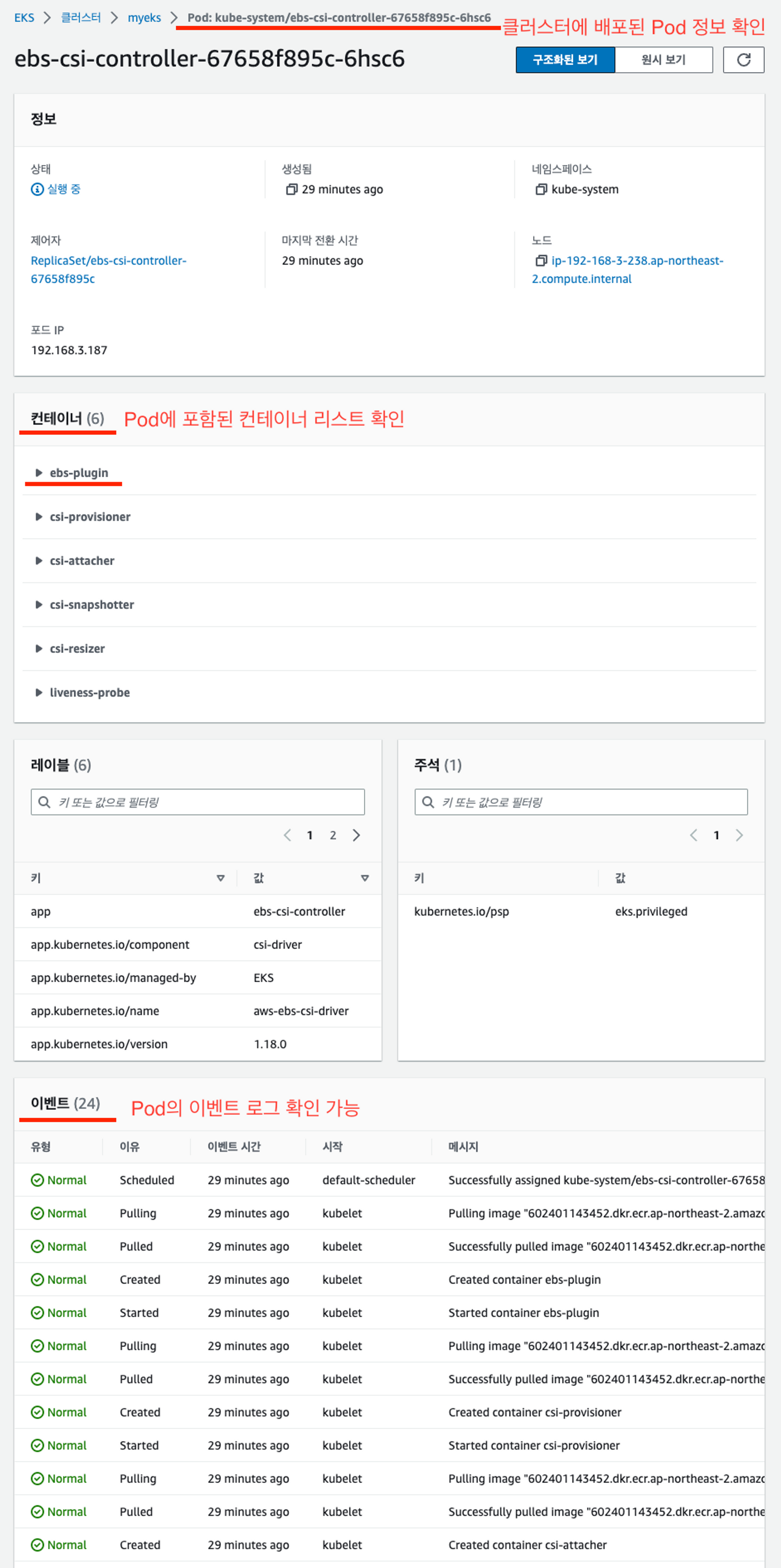 Pod에서 실행되고 있는 컨테이너들의 정보와 Pod에서 발생하는 이벤트 로그까지 디테일하게 확인할 수 있었는 간편성을 제공한다.