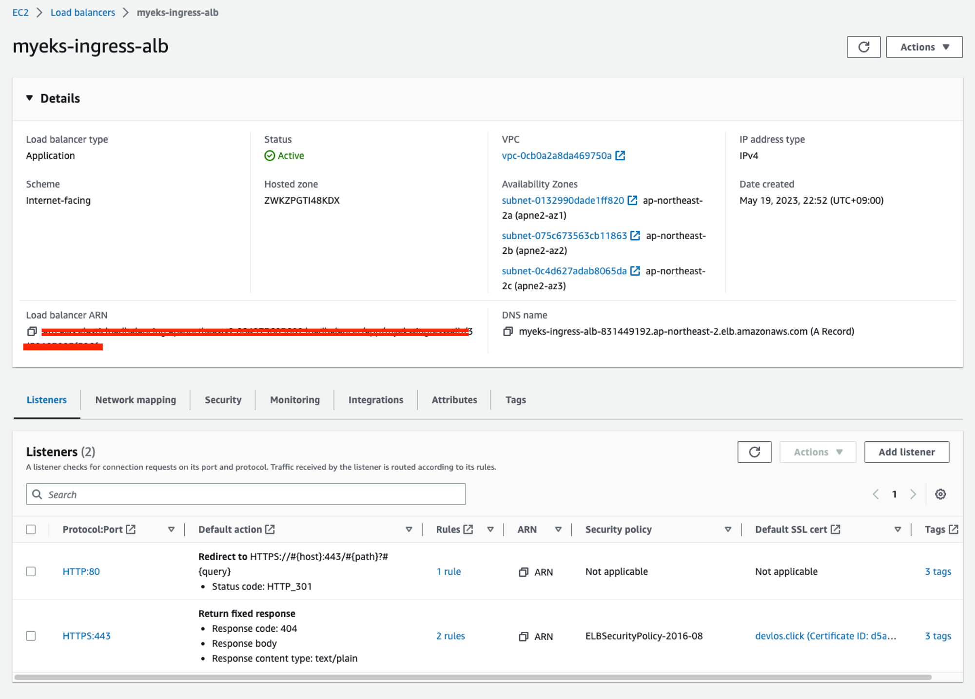 LB 버전업이 되면서 annotation에서 지정한 LB 이름이 나오고, Listener 80의 리다이렉션에 따라서 443으로 보내는 형태로 설정이 가능하게 되었다고 한다.