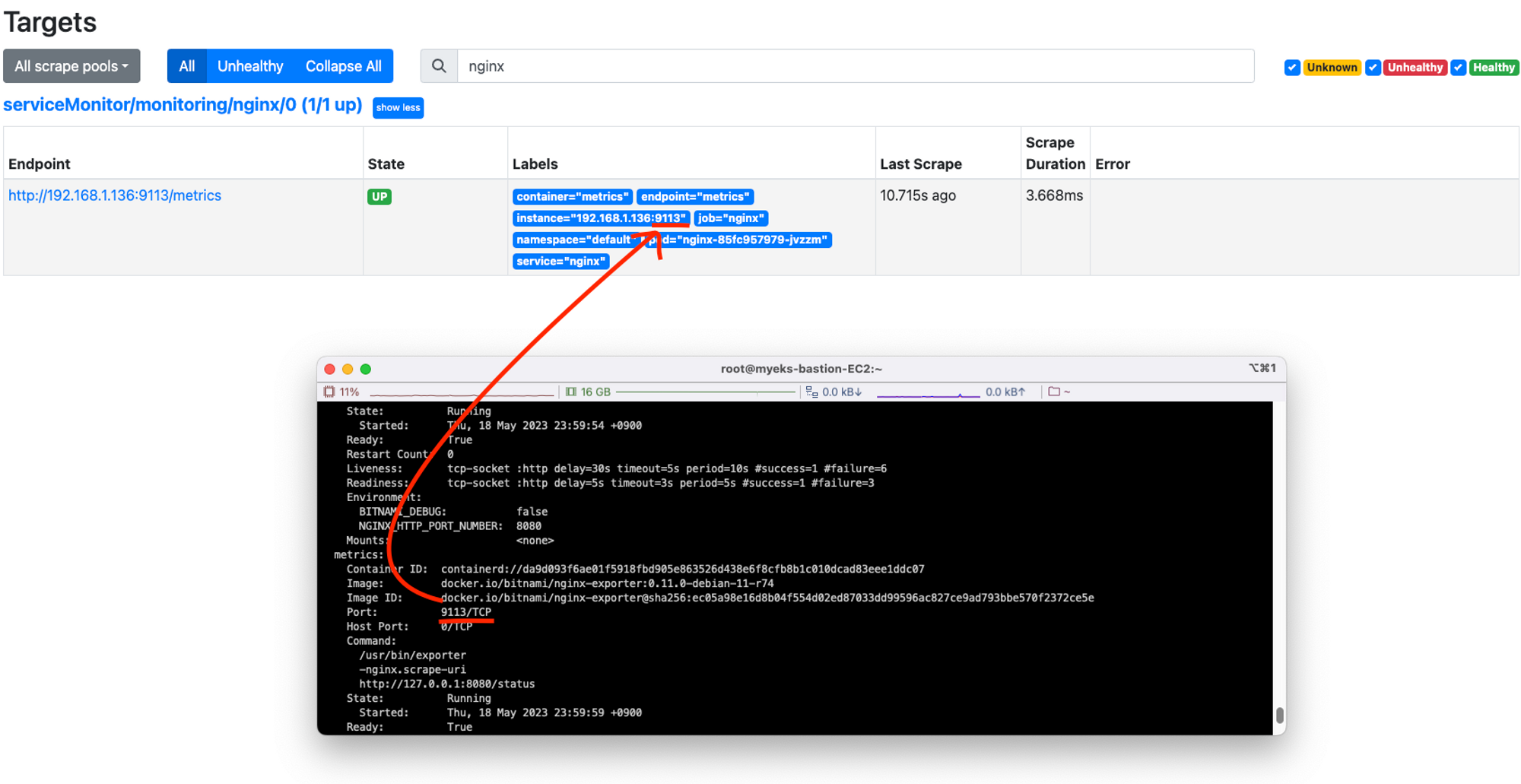 이 익스포터를 설치하게 되면 하나의 파드에 익스포터 컨테이너가 하나 더 뜨게 된다.