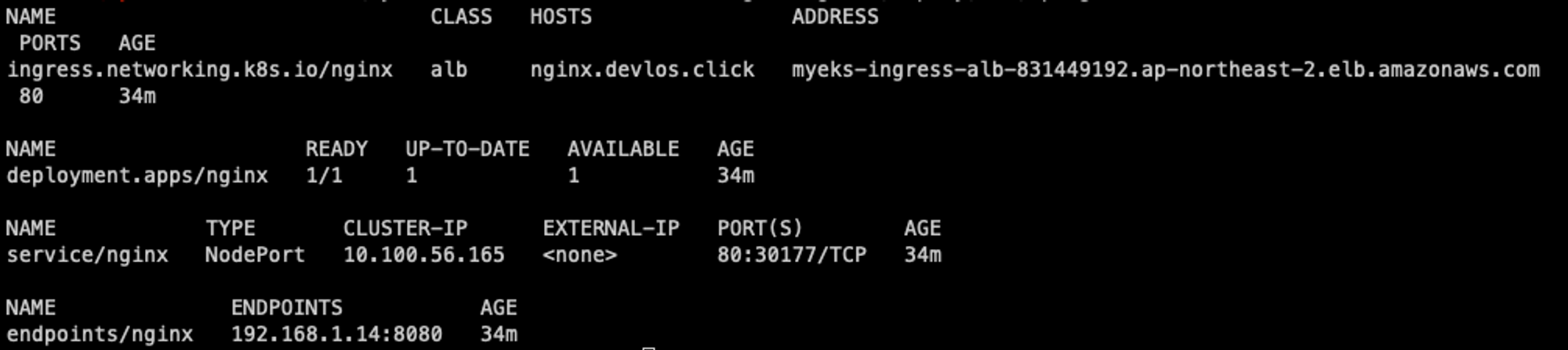 두 가지 ALB의 address가 같은 이유는 ingress 쓸 때 alb annotation의 그룹을 썼기 때문이다. 인입 요청의 헤더가 다를 때 Pod로 바이패스시킨다.