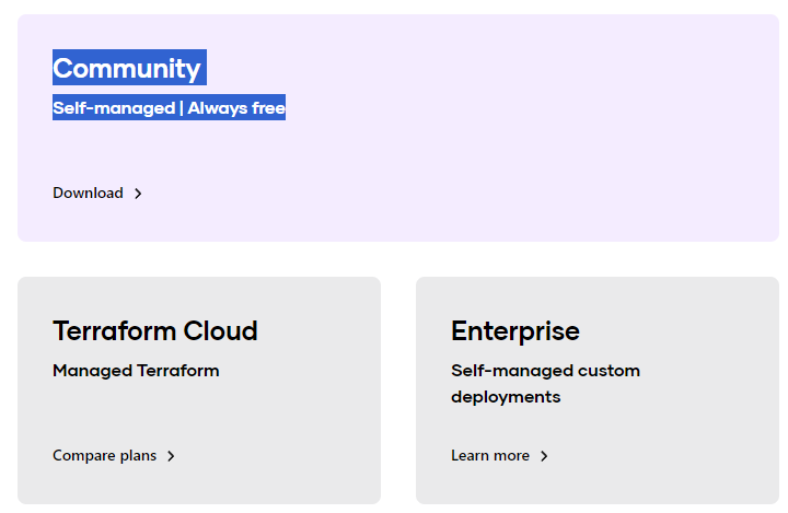Community 버전은 Terafrom이라 불리는 형태로, 사용자의 컴퓨팅 환경에 오픈소스 바이너리툴인 테라폼을 통해 사용합니다.