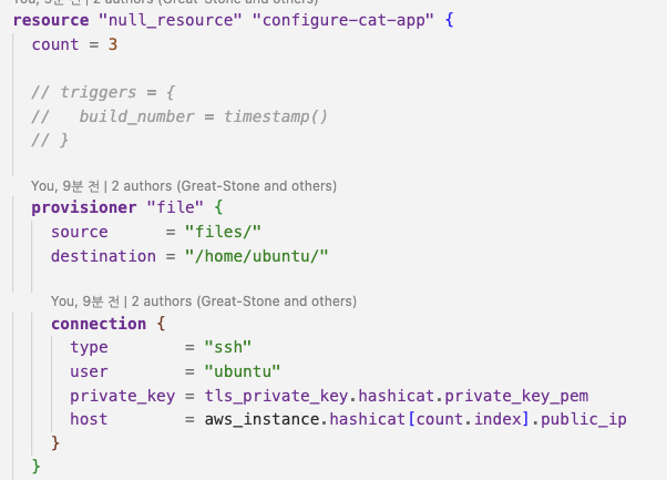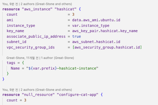 - aws_instance는 반복문을 사용해 3개 구성