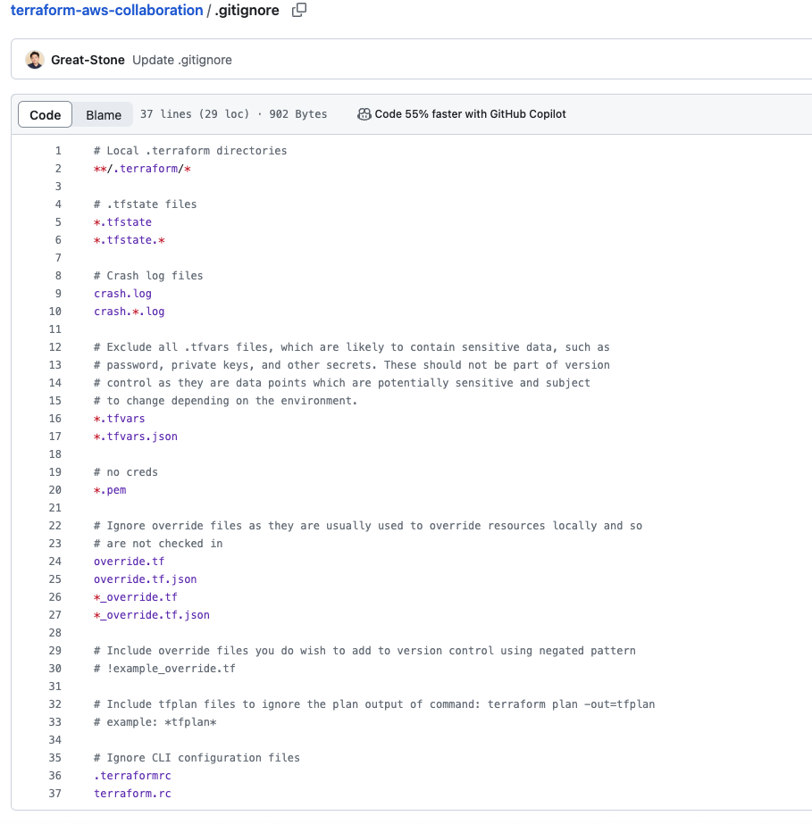 terrafrom 코드를 git으로 관리할 때는 다음과 같은 ignore 설정들이 있습니다.