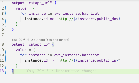 6. 마지막으로 output에서 각각의 instance ip를 확인할 수 있도록 for 문을 이용하여 출력을 수정합니다.