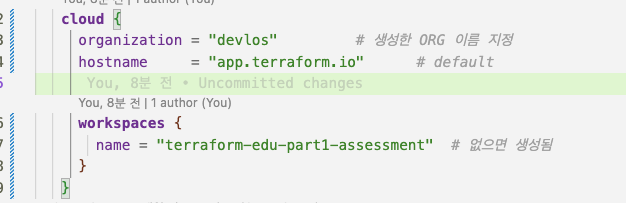 - Workspace 이름 : terraform-edu-part1-assessment