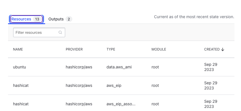 이제 TFC에서 관련 리소스들과 아웃풋을 모두 확인할 수 있습니다 :)