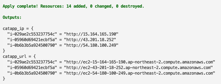 teraform apply를 수행하면 다음과 같이 결과를 확인할 수 있습니다!